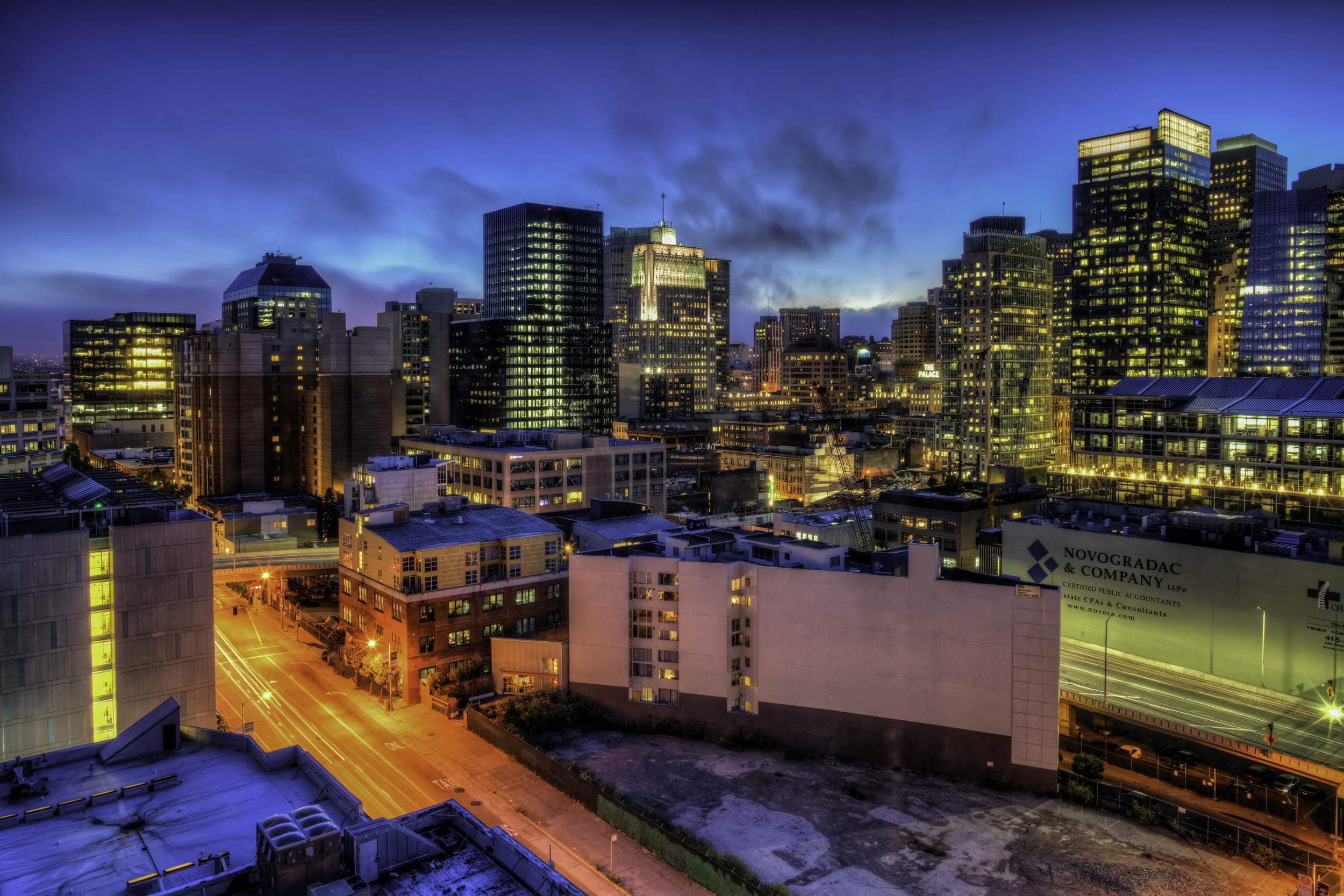 San Francisco's location along the coast gives it pretty amazing sunsets. There's usually some interesting clouds or fog in the area, and the colors at sunset can be absolutely beautiful. Getting some long-exposure action in here to pick up the light trails from the cars driving by, also picked up the colors of the sun and city lights interacting.